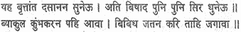 When Ravana heard what had happened, he beat his head again and again in utter despair. In sore perplexity he called on Kumbhakarna and with much trouble only managed to awaken him.