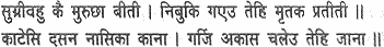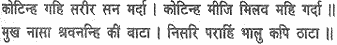 Meanwhile Sugriva also recovered from his swoon and slipped out of Kumbhakarna’s clutches who had taken him for dead (and consequently loosened his grip). Kumbhakarna discovered his escape only when Sugriva bit off the monster’s nose and ears and with a roar flew up into the air.
