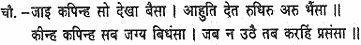 Arriving there, the monkeys found him squatting and offering an oblation of blood an live buffaloes to the sacrificial fire. The monkeys upset the whole sacrifice; yet, when the demon would not stir, they then took to praising him (ironically).