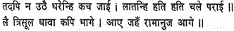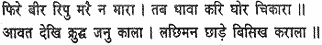 When still he made no move, the monkeys went and caught him by the hair and, striking him with the foot again and again, ran away. He rushed forth, trident in hand, while the monkeys fled and came where Lakshmana stood at the head of his army.