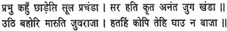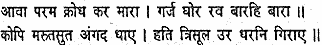 He then shot forth his fierce pike at the Lord (Lakshmana), but Ananta struck it with his arrow and broke it in two. Meanwhile Hanuman and Angad had risen again and smote him furiously, but he received no injury.