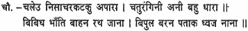 The countless demon troops sallied forth, regiments of elephants and chariots, foot and horse, the four divisions of the army, well equipped with chariots and cars and other vehicles of every description, with numerous banners and standards of diverse hues.