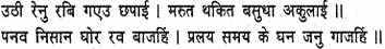 Countless herds of wrathful elephants move forth like rain clouds driven by the wind, and battalions of distinguished warriors wearing uniforms of various colours all valiant in battle and conversant with many illusive tricks.