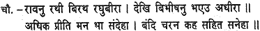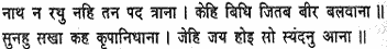 Seeing Ravana mounted on a chariot and Raghubira on foot, Vibhishana was disconcerted, his extreme affection for the Lord making him doubtful of mind; he made obeisance to his feet and spoke tenderly.