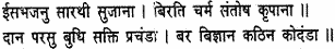 Valour and fortitude are the wheels of that chariot, while truthfulness and virtuous conduct are its enduring flags and pennants; strength, discretion, self-control and benevolence are its four horses, harnessed with the cords of forgiveness, compassion and evenness of mind.