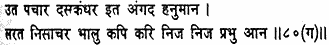 On the one side Ravana was bidding defiance to the foe, and on the other Angad and Hanuman. The demons marched to war with the bears and the monkeys, each host swearing allegiance to its lord.