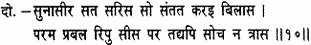 The Lord laid his head in the lap of Sugriva, the Monkey King, with his bow on his left and his quiver on his right; with his lotus hands he trimmed his arrows, while the prince of Lanka (Vibhishana) whispered some counsel in his ears.