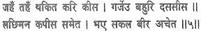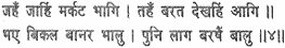 But withersoever they turned in their flight, they saw a blazing fire. When the monkeys and the bears were thus at a loss, Ravana began raining on them a shower of sand.