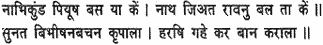 In the depth of Ravana’s navel there lies a pool of nectar, by virtue of which, my lord, his life is preserved.’ On hearing such words uttered by Vibhishana, the gracious Raghunatha was pleased and grasped his fierce arrows.