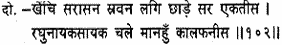 Drawing the bow-string to his ear, Raghunatha shot forth thirty-one shafts which sped forth like the serpents of doom.