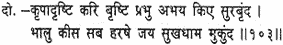 With a shower of gracious glances Rama dispelled the fears of the assembled gods; and the bears and monkeys all rejoiced and cried, ‘Victory to Mukunda, abode of bliss!’