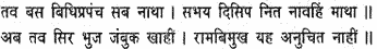 You deemed to be but mortal man Hari Himself, a veritable fire to burn the forest of devildom, and you worshipped not the All-merciful, to whom, my beloved spouse, Shiva and Brahma and all the gods do homage. From its very birth this body of yours had taken delight in injuring others and has been a mass of multitudinous sins; yet Rama has granted you a place in his own highest realm; I bow to him, the blameless, all-inclusive Absolute!