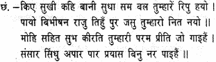 The lord put new heart into them with these ambrosial words; ‘It is by your might that the enemy has been slain and Vibhishana crowned king. Your glory will remain ever fresh in all the three spheres. Whoever with perfect devotion shall sing your glorious renown and mine shall cross without effort the boundless ocean of existence (i.e., birth and death).’