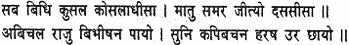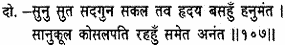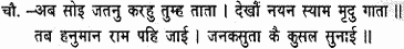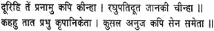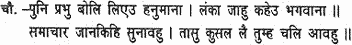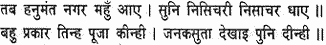 Hanuman made obeisance to her from a distance, and Janaki recognized him as Raghupati’s own envoy. ‘Tell me son,’ she said, ‘is my Lord, abode of grace, well and his brother and all the monkey host?