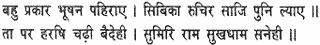 they also adorned her with jewels of every description and then brought a charming palanquin duly equipped. Sita joyously mounted it with her thoughts fixed on her loving lord Rama, abode of bliss.