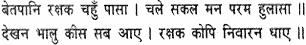 On all four sides (of the palanquin) went guards with staves in their hands, all supremely delighted at heart. The bears and the monkeys all came to catch a glimpse of her, but the guards darted in a fury to keep them back.