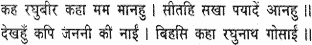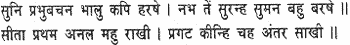 But said Raghubira, ‘Attend to what I say, my friend, and bring Sita on foot, that the monkeys may look on her as they would on their own mothers.’ Thus said the holy Lord Rama and smiled.