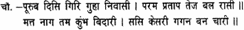It has its dwelling in te east as in a mountain cave, pre-eminent in grandeur, glory and strength; as a lion, ranging through the woods, rends asunder the head of a wild elephant, so the moon, pacing the plain of heaven, dispels the darkness of the night.