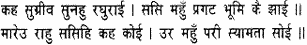 Said Sugriva, ‘Listen, Raghunatha; it is only the shadow of the earth that is seen in the moon.’ ‘Rahu struck the moon,’ said another, ‘and that is why a scar is left on its bosom.’