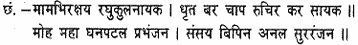 ‘Protect me, O Lord of the house of Raghu, equipped with your glorious bow and shining arrows in your hands. O furious wind to scatter the murky clouds of ignorance, O fire to consume the thickets of doubt, delight of the gods,