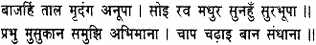 While the incomparable music of the cymbals and drums is the gentle rumble that you hear, O king of heaven.’ The Lord smiled and perceiving Ravana’s arrogance, strung his bow and fitted an arrow to the string.