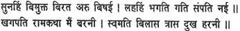 The finally emancipated, the detached and the worldly, who hear it, severally obtain devotion, final liberation and ever-increasing prosperity. O king of birds, this story of Rama that I have recounted according to my own light banishes the fear of birth and death and rids one of sorrow.