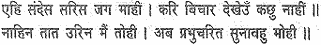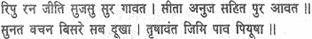 He for whose absence you grieve night and day, ever repeating the roll of his virtues, the glory of the house of Raghu, the delight of the faithful and the deliverer of gods and sages, has arrived in safety.