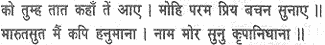 Who are you, friend,’ he said, ‘and where have you come from? Most welcome are the tidings you have brought me!’ ‘Listen, O fountain of mercy,’ he replied, ‘I am Son of the Wind, a monkey, and my name is Hanuman.