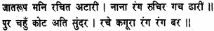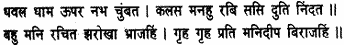 The glistening palaces were so lofty that they touched the sky with their pinnacles that put to shame the brightness of sun or moon; the lattice windows gleamed, set close with jewels, while every house was lit up with gem-encrusted lamps.