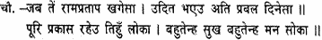 A sun to scatter the thick darkness of doubt and grief, and a fire to burn up the dense forest of the demon race. Why not worship Janaki and Raghubira, who dispels the fear of rebirth.