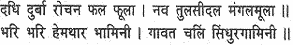 With golden dishes laden with curds and durva grass and the sacred yellow pigment, fruit and flowers and fresh leaves of the sacred tulasi (basil) plant, the root of all blessings, matrons sallied forth with the stately gait of an elephant, singing as they went.