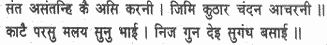 For this reason sandal finds its way to the heads of gods (their images) and is the desire of the world too, while the axe, for its punishment, has its steel edge heated the fire and beaten with a hammer.