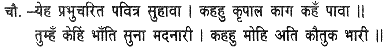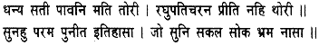 ‘A blessing, O Sati, on your holy thoughts! Great indeed is your love for Raghupati’s feet. Now listen to the very sacred story which, when heard, puts an end to every sorrow and delusion,