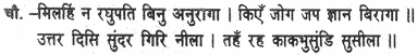 Without such affection Raghunatha is not won though you may practise Yoga (mind-control) or austere penance or cultivate spiritual wisdom or dispassion. In the north there is a beautiful purple mountain called Nilagiri, where lives the amiable Kakabhushundi,