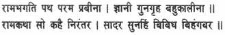 And listens there to the delightful story of Hari, which has been sung by sages I many ways and sole theme of which – at the beginning, in the middle as well as the end – is the Lord, the great God Rama.
