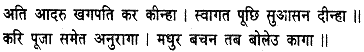 They received the king of birds with the utmost respect and, having asked after his continuing well-being, motioned him to an exalted seat. After paying him loving homage, Kakabhushundi addressed him in these honeyed accents;