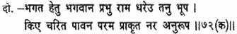 For the sake of his devotees, the Blessed Lord Rama assumed the form of an earthly sovereign and played his most holy part in the manner of an ordinary man,