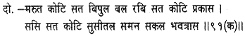 Rama is beautiful of body as a myriad Loves; inexorable in crushing his foes as countless myriads of Durgas; luxurious as a myriad Indras; immeasurable in expanse as a myriad firmaments.