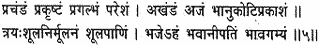 I worship Shankara, Bhavani’s spouse, the fierce, the exalted, the luminous, the Supreme Lord; the indivisible, unbegotten, brilliant with the radiance of a myriad suns; tearing up by the root the threefold pains, trident in hand, accessible only to love.
