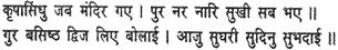 When the all-merciful Lord Rama entered the palace, every man and woman of the city felt gratified. The guru Vasishtha called the Brahmans and said, ‘The day and the hour and all the omens are propitious today.