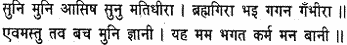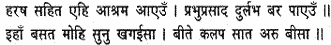 I am ever engaged (here) in hymning the praises of Raghunatha while enlightened birds reverently listen. Each time Raghubira takes upon him the form of a man in the city of Ayodhya to bless his votaries,