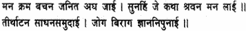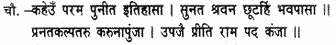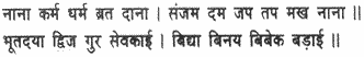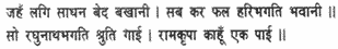 in short, all the expedients that the Vedas have prescribed, Bhavani, have but one reward – devotion to Hari. But to that devotion to Raghunatha which the scriptures describe scarce any has attained, and then only by the grace of Rama.