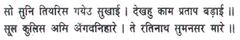 -was stunned at the news of his wife’s anger; behold have endured the strokes of the trident, the thunderbolt and the sword have been slain by the flowery shafts of Rati’s lord (the god of love)!