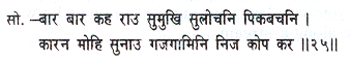 Said the king again and again, ‘Tell me the cause of your anger, O fair-faced, bright-eyed dame, with voice as melodious as the notes of a cuckoo and gait resembling that of an elephant.