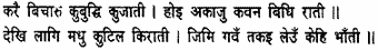 The evil-minded and low-born woman pondered how that very night the plan might be defeated, like a crafty Bhil woman who has seen a honeycomb hanging from a tree and lies in wait, scheming to get hold of it.