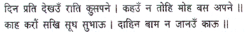 By a turn of fate Kaikeyi conceived a fondness for mischief and began to praise a crane, mistaking it for a swan. ‘Listen, O Manthara,’ she said, ‘what you say is true. My right eye is always throbbing,