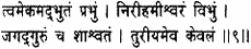 You I worship, the one mysterious Lord, the passionless and omnipresent sovereign, the guru of the world, eternal transcending the three gunas (sattva, rajas and tamas), the one absolute and universal spirit.