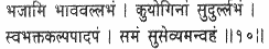 I adore him who is fond of devotion, who is most difficult of access to the sensual, a wish-yielding tree to his own worshippers, impartial, ever worthy to be gladly worshipped.