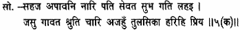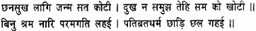 Though woman is inherently impure, she wins to a happy state (hereafter) by serving her lord. (It is due to her loyalty to her husband that) tulasi is beloved of Hari even to this day and her glory is sung by all the four Vedas.