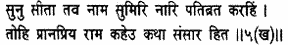 Listen, Sita; women will maintain their vow of fidelity by invoking your name, for Rama is dear to you as your own life. It is for the good of the world that I have spoken these words.’